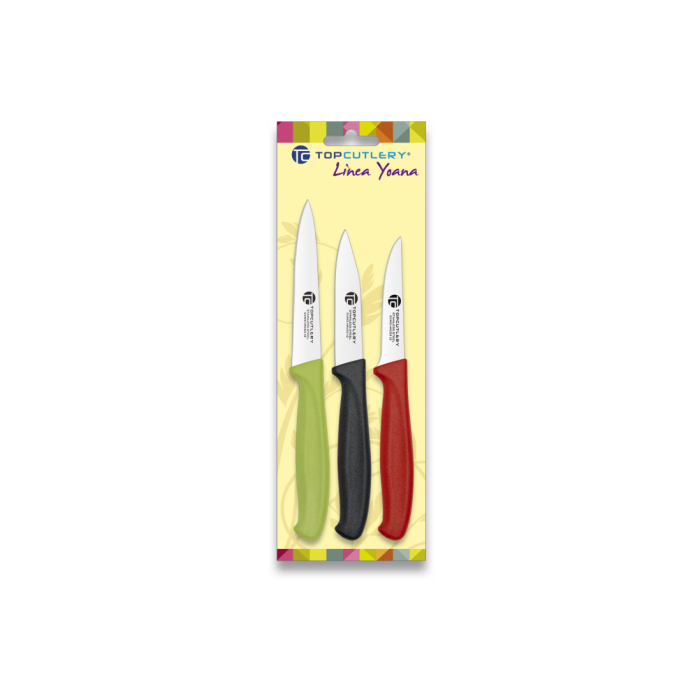 - Марка: Top cutlery - Дължина на острието: 10.5см/8.5см/7.5см - Материал на острието: неръждаема стомана X30 CR13 HRC53+/-2 и 8Cr13 - Ръкохватка: полимерна