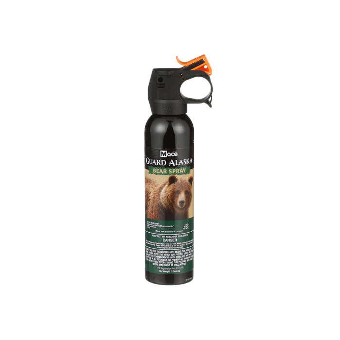 Спреят за мечки на Mace Brand Guard Alaska Bear Spray е състав на Oleoresin Capsicum (OC) специална Bear Safe формула, естествена съставка, получена от люти чушки, която е регулирана с EPA и е с 20% OC, 1,34 капсаициноидна супер гореща формула. При контакт OC Pepper предизвиква дразнене на очите, носа и белите дробове на мечката и резултатът е временна загуба на зрението, ограничаване на дишането и болезнено усещане за парене. Спреят Mace Guard Alaska Bear Spray е безопасен, хуманен и ефективен начин да се предпазите по време на къмпинг, туризъм, лов или риболов в населени с мечки райони. Мощната магнум мъгла осигурява екстремна мъглива струя, която достига до 30 фута (10 метра).