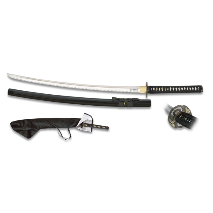 Класически самурайски меч Катана модел 31587 Toledo Imperial. Острието е гладко, двустранно заточено. Изработено от въглеродна стомана. Канията е дървена, лакирана в черно. Ръкохватката е обвита с декоративна оплекта. Мечът се предлага в комплект с дървена поставка.
