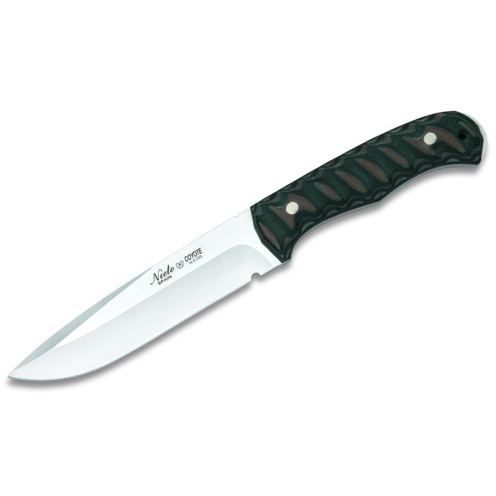 Нож от серията Coyote Tactico Katex, изработен от неръждаема стомана и katex (масивен термоустойчив материал, получен чрез рециклиране, импрегниран със смола и подложен на обработка). Ножът се предлага с кания, изработена от висококачествена черна кожа.