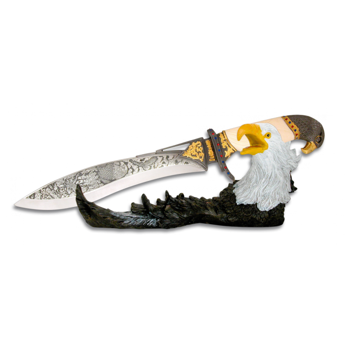 Моделът 31539 на Toledo Imperial е подходящ подарък за колекционери и любители на испанските продукти с оригинален дизайн. Острието е инкрустирано, двустранно заточено, изработено от неръждаема стомана. Ръкохватката е изработена от смола и е декорирана с орнаменти и животни. Поставката е изработена от дърво и смола и декорирана с орел.