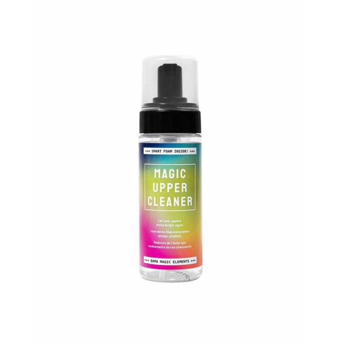 Уникална почистваща пяна за обувки от Bama - Magic Upper Cleaner, иновативен продукт с патентована технология на водна основа, предназначен за почистване на горната част на обувките. Продукта е подходящ за всички видове обувки и особено за всякакъв вид маратонки или спортни обувки. Продукта притежава „умни“ молекули на активната съставка, които разпознават частиците мръсотия чрез електростатични сили на привличане и ги свързват към себе си. Вълшебната почистваща пяна е не само особено ефективна, но и изключително мека и нежна към материала, хората и околната среда Начин на употреба: Флаконът се разклаща добре преди употреба. Напръсква се замърсената обувка на разстояние 10-15см и се оставя да подейства за 5 минути. След което се избърсва с гъба или кърпа.