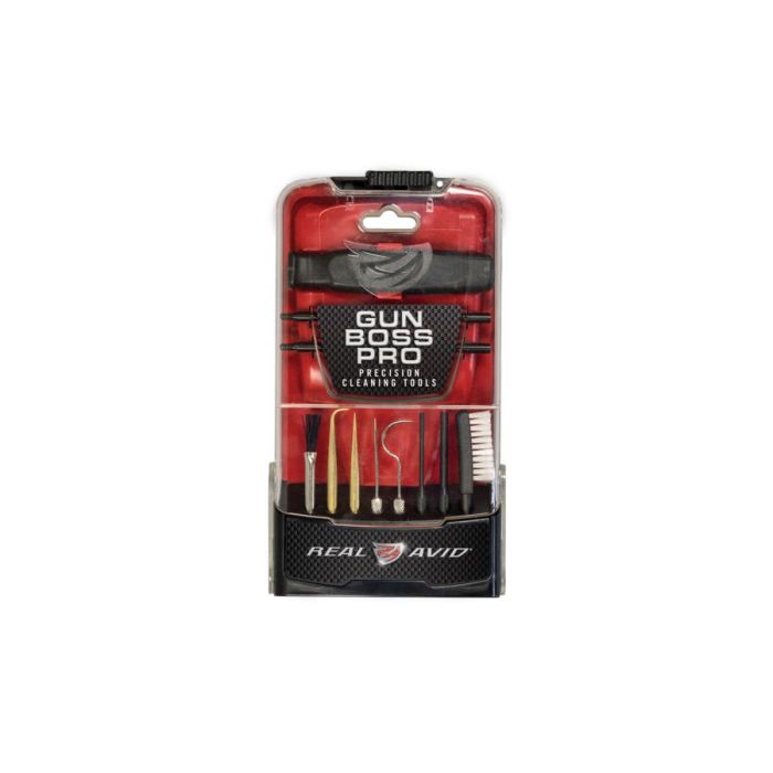 Gun Boss Pro прецизни почистващи инструменти са идеални за собствениците на оръжия. Патентованата, здрава кутия съхранява и организира инструментите, за да са под ръка. Ергономичната ръкохватка и удължителите спомагат за почистването на по-сложни части на оръжието, места които традиционните почистващи комплекти не могат да достигнат.
