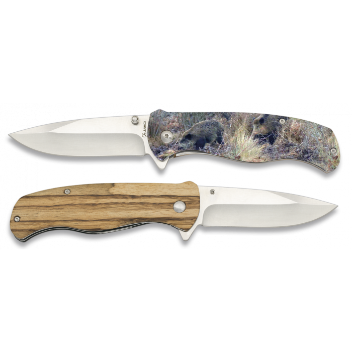 Сгъваем джобен ловен нож на испанската фирма Martinez Albainox, модел 19846 Wild Boar. Ножът е с класическо едностранно заточено острие, изработено от неръждаема стомана. Ръкохватката е произведена от дърво с релефно отпечатана картина на диви прасета. Изключително подходящ за подарък, всекидневно използване или лов.