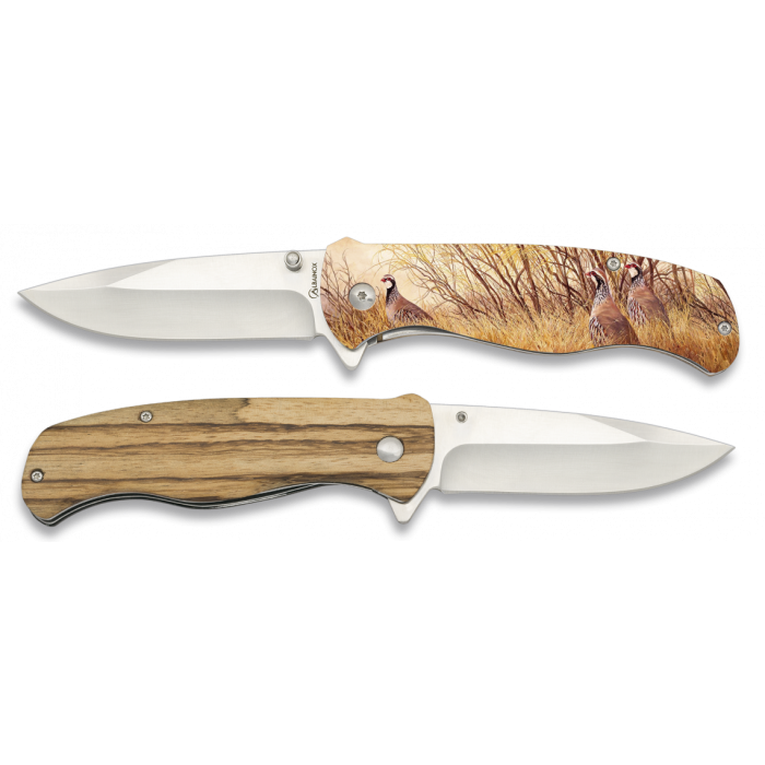 Сгъваем джобен ловен нож на испанската фирма Martinez Albainox, модел 19847 Partrige Bird. Ножът е с класическо едностранно заточено острие, изработено от неръждаема стомана. Ръкохватката е произведена от дърво с релефно отпечатана картина на яребици. Изключително подходящ за подарък, всекидневно използване или лов.