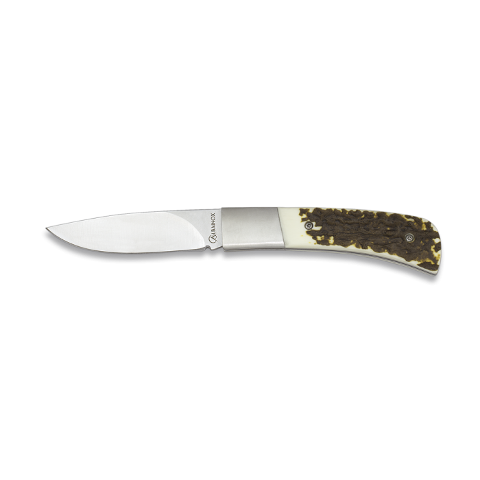 Сгъваем джобен нож от испанската фирма Martinez Albainox, модел German 18202. Ножът е с острие, произведено от неръждаема стомана. Ръкохватката му е с удобен захват, произведена от ABS, имитираща еленов рог. Подходящ за ежедневна употреба и подарък.