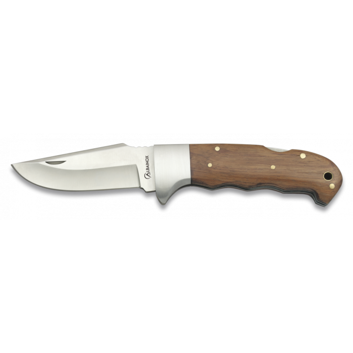 Сгъваем джобен нож Martinez Albainox модел 19369, подходящ за ежедневна употреба и лов. Острието му е изработено от неръждаема стомана, класически тип. Ръкохватката е с ергономична форма, изработена от дърво, като в края си има отвор за ремък и алуминиев гард, който предпазва пръстите.