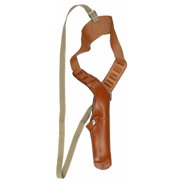 X-15® е вертикален кобур за носене през рамо със затваряне с палец. Изработен от пълнозърнеста растително дъбена телешка кожа, той разполага с дизайн с двойна пружина и вторична задържаща лента, за да гарантира сигурността на оръжието, без да жертва скоростта. Широкият колан в стил X поддържа тежестта равномерно на рамото, което го прави удобен и сигурен избор. Напълно регулируем колан от мека кожа, който се приспособява към гръдния кош, с обща дължина 48" (122см). Подходящ за пистолети Colt 1911.