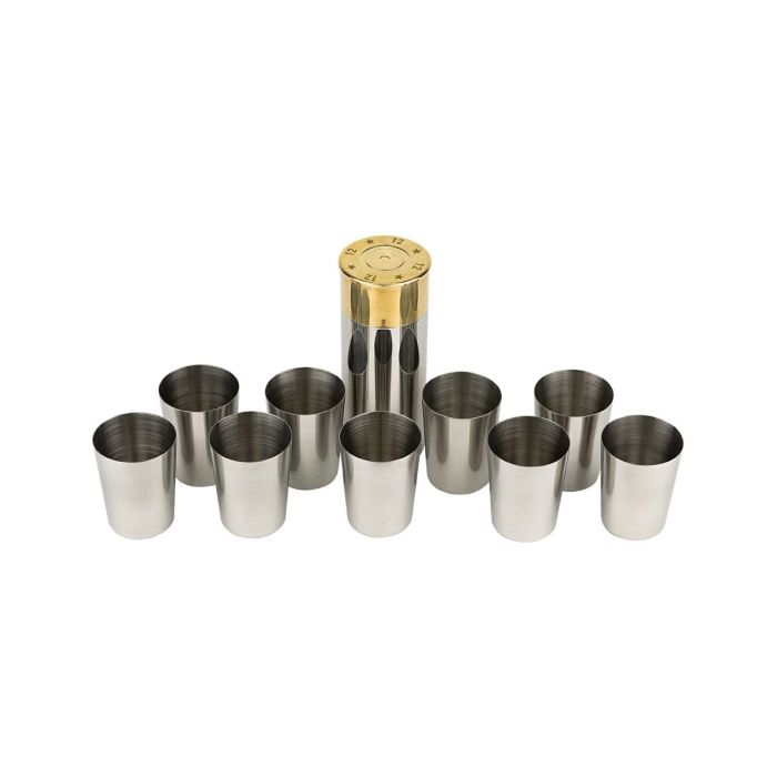 Характеристики: Предлага се с лесна фуния за пълнене Девет номерирани и подредени чаши Държач във формата на патрон Полирано покритие Отлична идея за подарък, предлага се в презентационна кутия