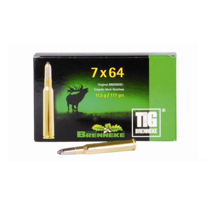 Патроните TIG (Torpedo Ideal Grschoss) са много добър избор за едър и среден дивеч. Използват се с голям успех по целия свят, независимо дали сте на лов за глигани или сърни в родната си страна или на лов за диви кози в Казахстан - TIG е идеален за всякакви цели. Дизайнът на този тип куршуми спомага за гъбообразната деформация на задната сърцевина с максимално освобождаване на енергия, благодарение на покритата с никел стоманена обвивка на ризницата. Ризницата помага и за оптимално проникване в дивеча и голяма точност. Куршумът на 7х64 TIG има остър режещ ръб, който при попадение безотказано пробива козината на животното и прави кръгъл отвор за бързо изтичане на кръвта, а опашката му тип "торпедо" осъществява отлична балистика.