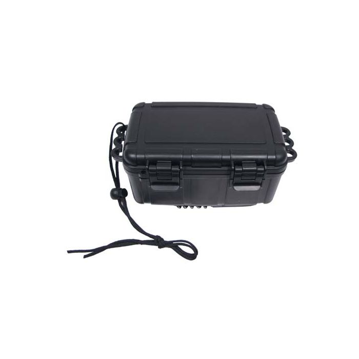 Кутия за съхранение на вещи, водонепромокаема, херметически затваряща се. Изработена от полимер. Снабдена с регулируема връзка. Размери: 16,5x12x7,5 cm Предлага се в черен цвят.