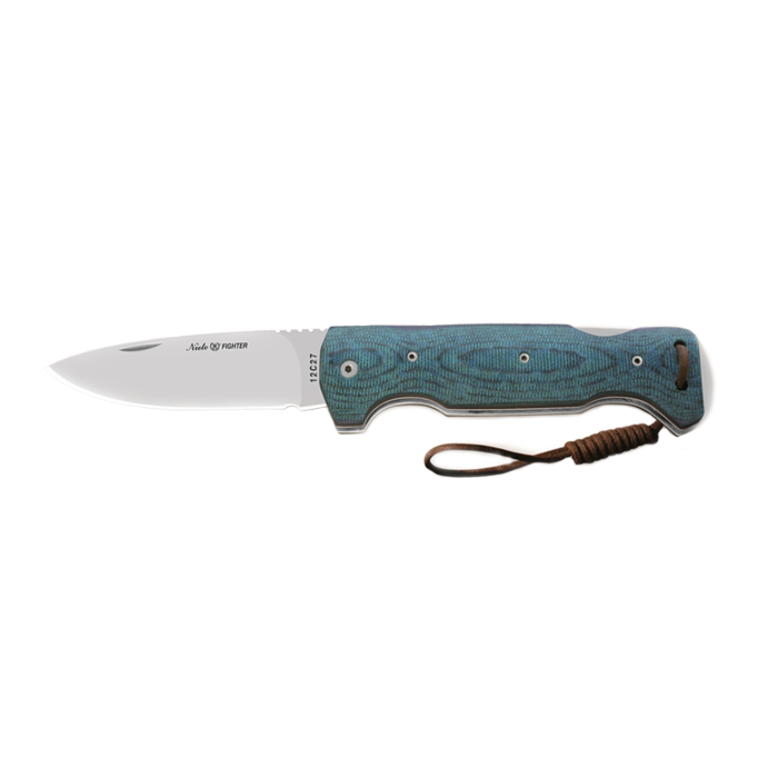 Tactical knife Fighter 13030 with а blade made of 12C27 steel, with a comfortable handle - Blue Katex type. The handle has a small hole and rope on its end.