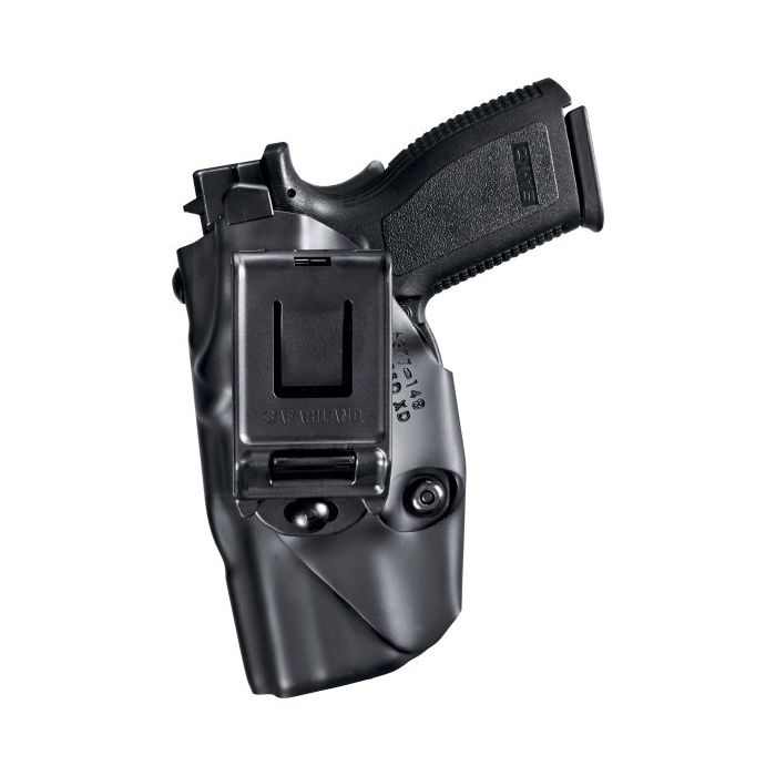 Model 6379 features an ALS automatic locking system - once the weapon is in the holster, it locks it in place. The holster has a standard 745BL belt clip, for more comfort and easy insertion and removal (fits 38mm to 58mm wide belts). Crafted from SafariLaminate™ and STX suede-lined finish to protect your gun's finish. It is suitable for a right hand. Fits Glock 19/23 pistols.