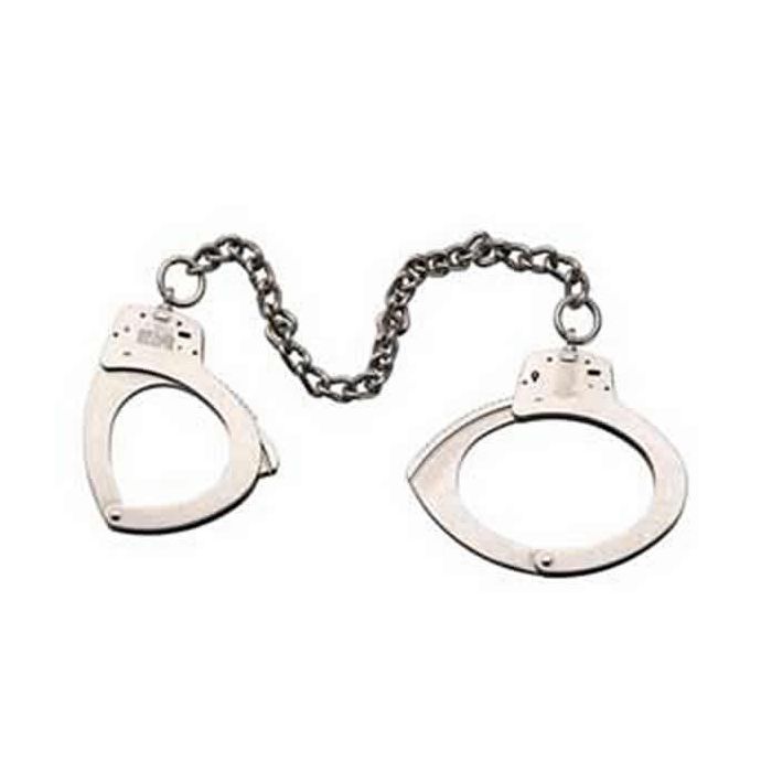 Over-sizеd leg irons with 14" high-security heat-treated chain and larger dimension, elliptically contoured satin nickel cuffs. Smith & Wesson Handcuffs are fabricated from the finest quality carbon stеel. They are manufactured with heat treated internal lockworks, featuring smooth ratchets for swift cuffing and double locks to prevent tampering.