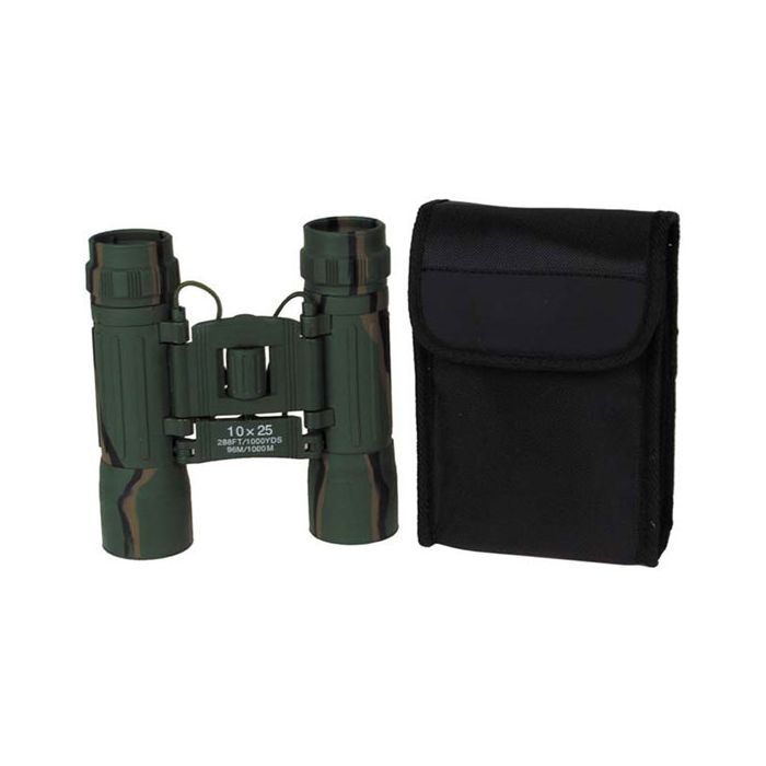 - Magnification: 10x - Lens diameter: 25 mm - Field of View: 96/1000 m - Woodland color - Weight: 215 g