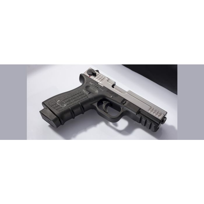 Semi - Automatic - Single action mechanism lock by hardened steel side button when out of cartridge. Magazine realease button at the side. THE COCK IS MADE OF STEEL PROFILE. Hardened steel ckck-lowering. Hardened steel shell launcher and puller extractor. Steel-Pleated zinc alloy mechanism adjustable sight trigger lock saffety hight quality polymer farame capability.