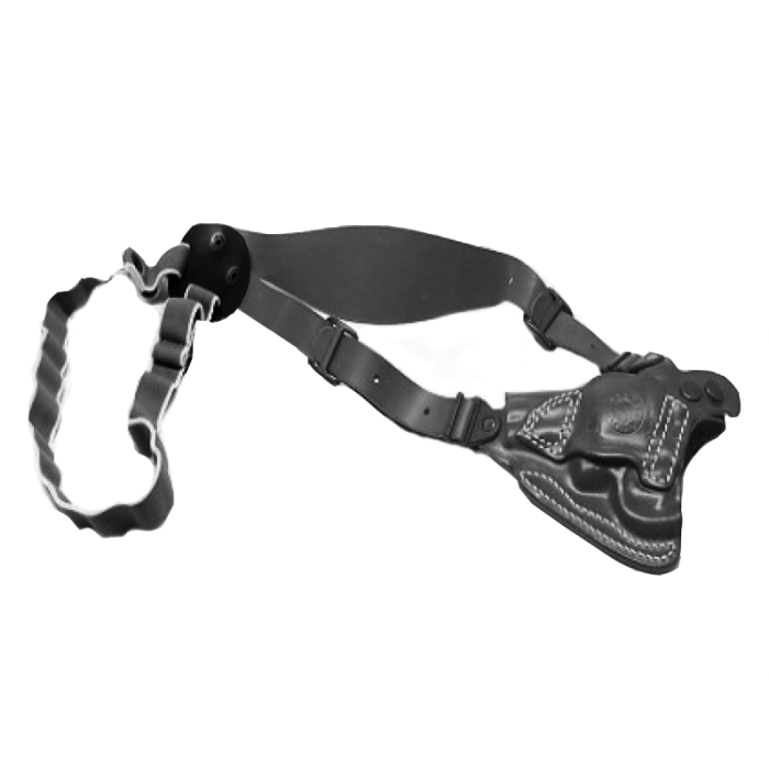 Horizontal shoulder or belt leather holster, quick release 4 positions: horizontal on the shoulder, on the belt on the right side, cross draw or horizontal on the back.