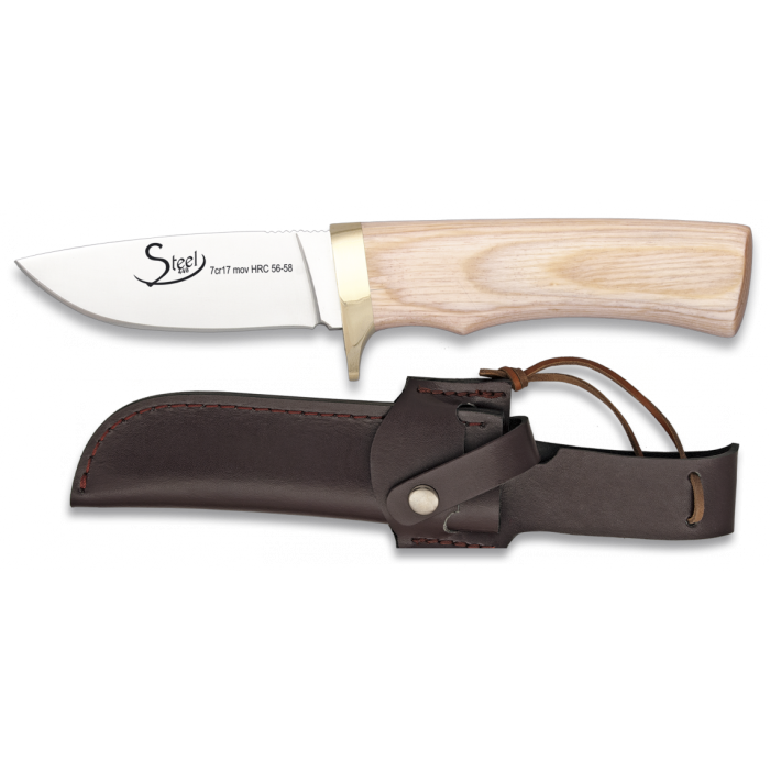 - Blade Material: Stainless Steel 7cr17 mov HRC 56-58 - Blade length: 8.7 cm - Material of the handle: wood - Total length: 20.7 cm - Leather Sheath