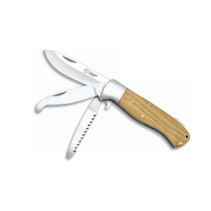 Folding knife 19635 with three blades and a handle made of olive wood -  great for hunting, picnic or hiking.