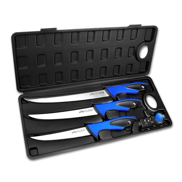 The Outdoor Edge Reel-Flex Pack consists of three professional filleting knives with different blade lengths. Designed by Jerry Hossom, the knives feature textured TPE handles for maximum slip resistance and blades made from high-quality German 4116 steel, which with its corrosion resistance and high cutting durability far surpasses other filleting knives in this price range.