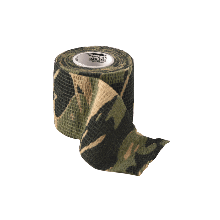 Soft woven camo tape with latex, self clinging, sticks to itself not your equipment. Ideal for covering all hunting equipment, reusable.
