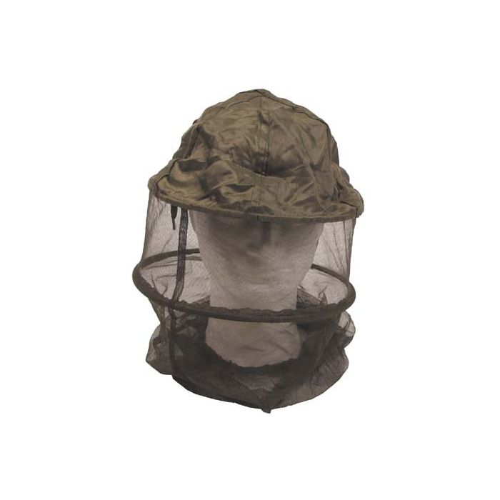 Hat with a net and metal rings protecting against mosquitos. Offered in dark green color, made of 100% nylon.