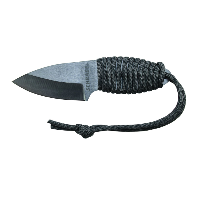 Schrade Full Tang Fixed Blade Neck Knife, Ceramic Drop Point Blade, 550 Paracord Handle Wrap with Lanyard Hole and Nylon Fiber Neck Sheath with Breakaway Neck Chain.