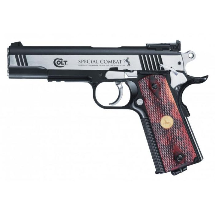 The model"Colt Special Combat Classic"is designed fortraining and recreationalshooting.firingthe pelletsbyusinga capsule withcarbon dioxide, which isplaced in the handle.Witha12gram cartridgecanbe produced up to60 shots.Produced byGerman company Umarexanda copyof the classicversion ofCOLT.Initial speedof theball shotis 125m / s.