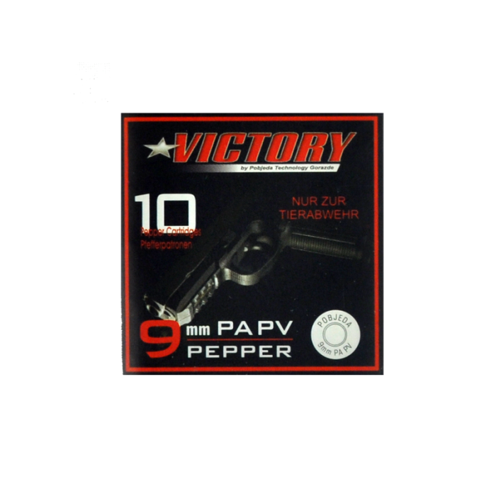 Газови патрони с раздразващо вещество PV - нонимавид (технически пипер) от Pobjeda - Босна и Херцеговина. Във всеки патрон се съдържа 55mg PV. Използват се за самозащита от агресивни животни. Не са подходящи за употребата на хора!