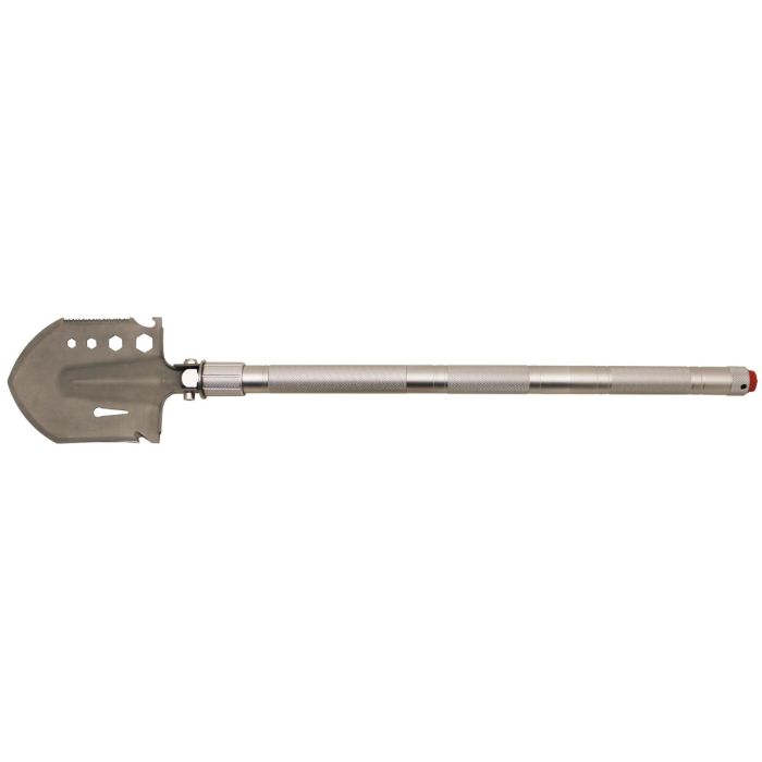 Спецификации: Регулируема дължина на ръкохватката, чрез отделно монтиране на частите Може да се използва като лопата, мотика, чук, брадва и др. Нож с трион и отварачка за бутилки и острие за рязане на колани Сигнална свирка с магнезиево огниво 2 отвертки Пъпка за чупене на стъкло Отвори с различни гаечни ключове Острие за лопата от стомана 2Cr13 Калъф с презрамка и възможност за носене на колан Размер на острието: около 17 х 13 см Обща дължина: около 77 см Дължина сгъната нагоре: около 58 см Тегло с калъф: около 1,17 кг