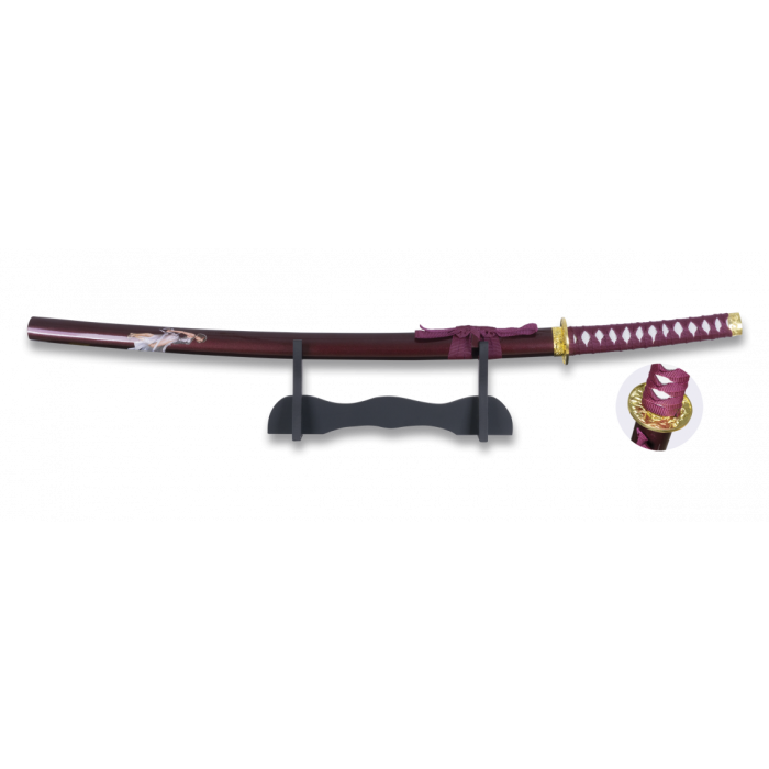 Самурайски меч Катана от испанската фирма Tole10 модел 32225, подходящ за декориране и за колекционери. Острието е гладко, едностранно заточено, изработено от въглеродна стомана. Ръкохватката е декорирана с оплетка и е снабдена с тсуба (гард). Мечът се предлага с щампована кания и дървена поставка.