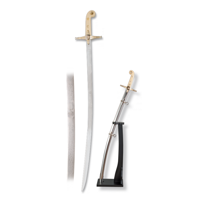 Сабя Toledo Imperail, подходяща за колекционери, за подарък или декорация. Острието е произведено от неръждаема стомана с орнаментика, постигната с помощта на лазер. Ръкохватката е изработена от полимер и декориран гард. Сабята се предлага с кания и дървена поставка.