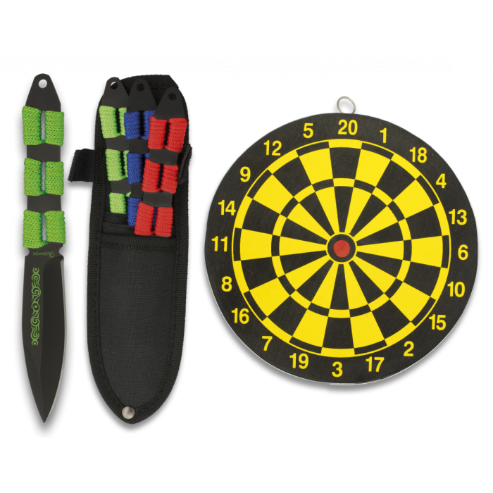 Спецификации: Материал на камите: неръждаема стомана Дължина на камите: 17.7 см Материал на мишената: фазер Дебелина на мишената: 1 см Диаметър на мишената: 20 см
