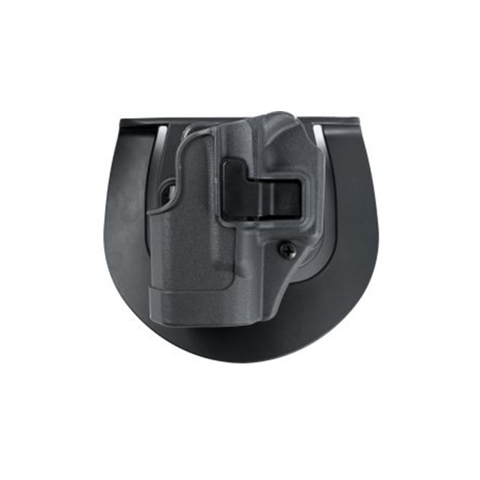 Полимерен кобур с уникален дизайн, с който забравяте за старите модели със закопчалка, натоварващи и забавящи процеса на изваждане на оръжието. Патентованата заключваща система „Серпа Спортстер” блокира спусковата скоба на оръжието при прибирането му в кобура и го задържа стабилно до повторно изваждане. Това става с нормално движение на ръката и показалеца на стрелящата ръка. Показалецът на стрелящата ръка отключва механизма, натискайки специален бутон. Боравенето с него е бързо и лесно, тъй като е съобразено с естествените движения на стрелеца, за разлика от ключалките, преодоляващи се с палец и понякога трудни за манипулиране с една ръка. Всички кобури от тази серия са в комплект с платформа за колан и допълнителен закрепващ към колана елемент, известен като „лопатка”. Характерен за тази серия е сивия цвят на кобура. Подходящ е за модели 26/27/33 на австрийската фирма „Глок”. Предназначен е за стрелци, използващи лява ръка! Предлага се и във вариант за дясна ръка: 413501BK-R (80099)