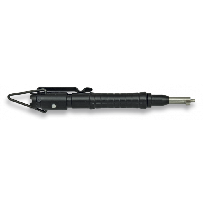Малък куботан за ключодържател изработен от алуминий със заострен връх от волфрам. В комбинация с универсален ключ за белезници, метална щипка за закачане и LED фенерче.