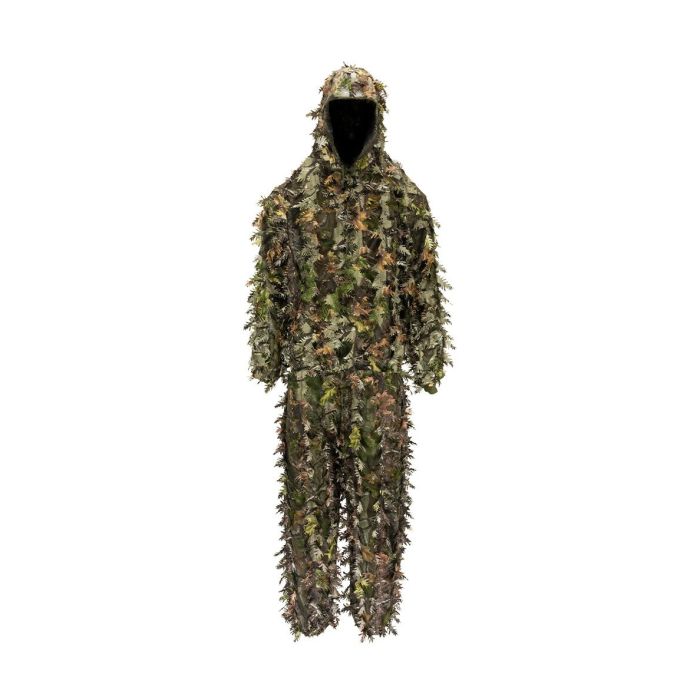 Характеристики: Изключително лек до 480g Много компактен за съхранение 3D камуфлажна система LLCS с листа Състои се от яке и панталон Регулируема качулка с шнур Ластични маншети Еластичен шнур за талията Закопчаване с тик-так копчета отпред на якето Мрежеста чанта за съхранение Безшумен Материал: 100% полиестер