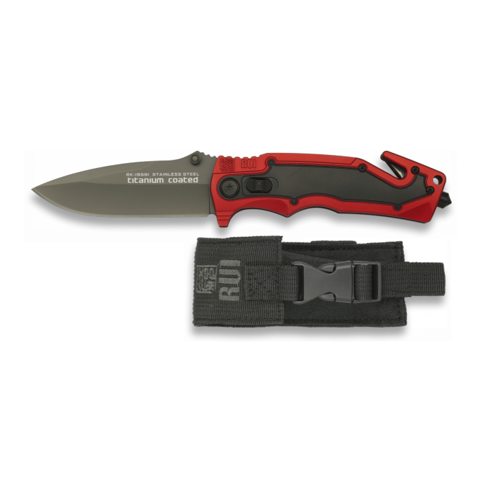 - Материал на острието: неръждаема стомана с титаниево покритие - Дължина на острието: 8.8см - Дебелина на острието: 3мм - Ръкохватка: с гумирано покритие - Стъкло разбивач на дръжката - Калъф: синтетика