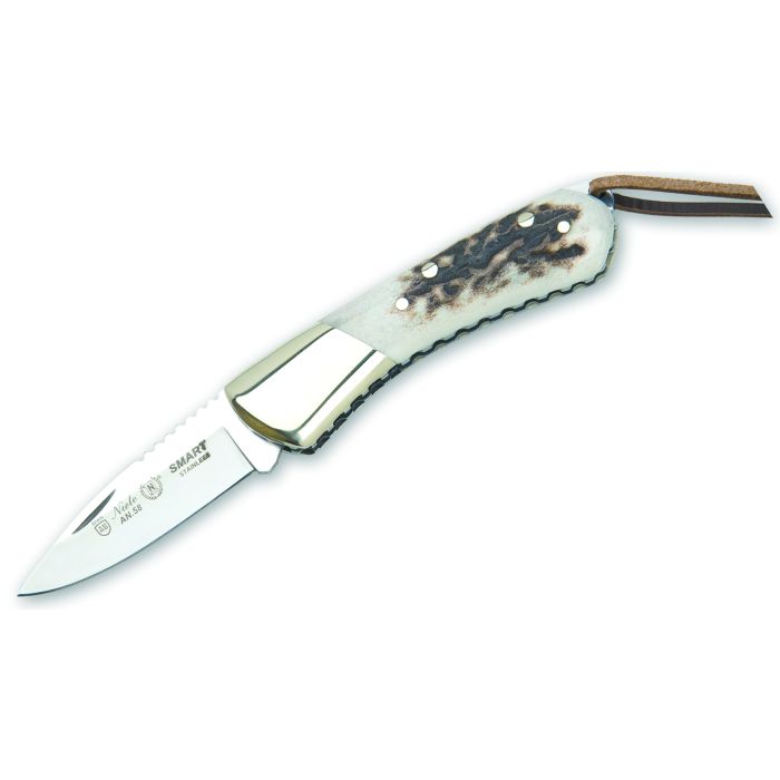 Сгъваем нож серия Smart от Miguel Nieto. Снабден с острие от неръждаема стомана, ръкохватка от еленов рог и нит от стомана 330, този нож е достоен да заеме място в колекциите на ценителите на испанския стил и качествената и прецизна изработка.