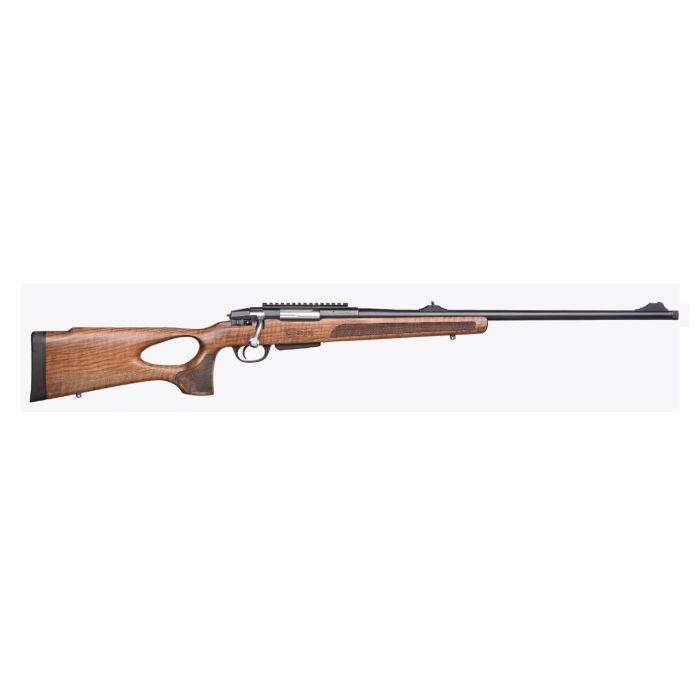 пецификации: SKU: 681047 Модел: TURQUA II Мерни прибори: регулируеми Муфа: 14х1 Калибър: .308 Win Прецизност: 1 MOA - 3 изстрела в група в рамките на 1,047 инча (2,65 см) на 100 ярда (91,44 м) Материал на цевта: хром молибденова стомана със специално оформление Нарези на цевта: 4 Стъпка на цевта: 1:11" Дължина на цевта: 24" (61см) Покритие на цевта: синя оксидация Спусък: 2-степенен, Регулируем от 0,8 кг (1,7 кг) до 1,6 кг (3,5 кг) Затвор: Моноблок стомана, има три бойни упора Цевна кутия: моноблок стомана Пикатини релса: стоманена, ~22mm, 0 MOA, Mil-Std 1913 Предпазител: 3-степенен - 1. Огън; 2. Заключва спусковия механизъм, но затвора работи; 3. Заключва и затвора и спусковия механизъм Капацитет на пълнителя: едноредов с 3 и 5 патрона Приклад: Матиран и импрегниран с масло селектиран турски орех с отвор и ръкохватка Тегло: 3,65kg (8lbs) Предлага се в комплект с регулируеми мерни прибори, 2 бр. пълнители - 3 и 5 заряден, релса "Пикатини".
