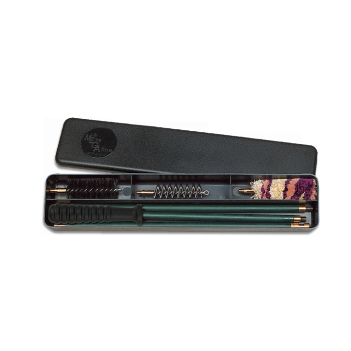 Комплект за почистване на пушка cal. 12. Комплектът съдържа: стоманен шомпол от 3 части със синтетична дръжка, стоманена спираловидна четка, синтетична четка и вълнено кече. Предлага се в комплект с компактна полимерна кутия за съхранение.