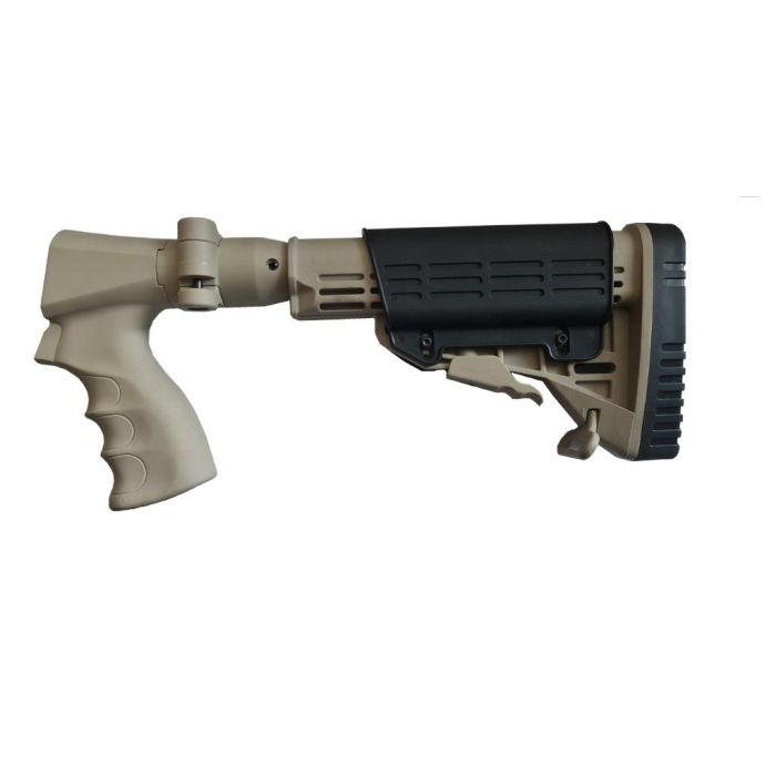 Може да бъде монтиран на почти всички гладкоцевни пушки и помпи 12 калибър. При някои модели може да има празнина между защитата на спусъка и ръкохватката (Hatsan Escort extreme). Ръкохватката е пистолетна, ергономична. Прикладът има регулируема буза и възможност за смяна на местоположението на ремъка: от лява или дясно. Изработен от полимер, цвят: черен/бежов.