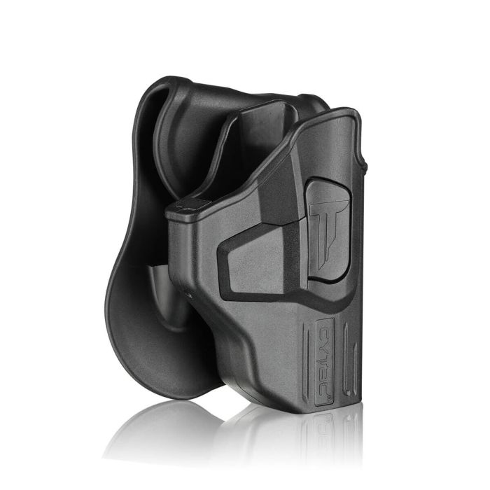 Holsterul Cytac R-Defender a fost îmbunătățit pe baza unui mecanism de reglare a tensiunii și a unei tăieturi mai mici. Mecanismul de reglare a tensiunii asigură că nu există joc pe armă. Iar tăietura inferioară vă ajută să transportați arma într-un toc cu un încărcător rapid montat pe acesta. Un toc este cel mai sigur mod de port ascuns și vă oferă un acces mai ușor și mai fiabil. Holsterul Cytac R-Defender oferă modul clasic de reholster - prin utilizarea degetului arătător pentru eliberare. Cei mai experimentați trăgători preferă să aleagă acest tip de holster. Vine cu o paletă pentru atașarea la curea, iarmaterialul său modern creează o senzație mai moale, mai prietenoasă cu pielea atunci când este purtat.
