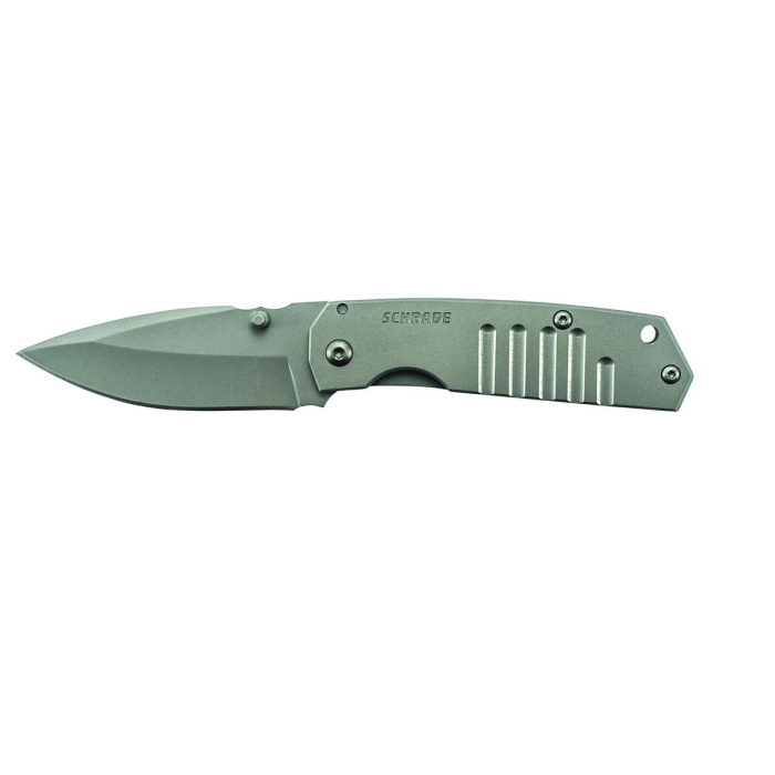 Schrade модел SCH304m е сгъваем нож с рамково заключване и възможност за отваряне с една ръка. Острието му е изработено от 9Cr18MoV висококачествена въглеродна неръждаема стомана с титаниево покритие. Ръкохватката е с улей , изработена от неръждаема стомана с титаниево покритие. Има клипс с възможност за закачване на колан и отвор за ремък.