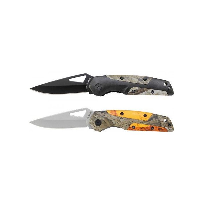 Комбиниран пакет от два броя висококачествени сгъваеми ножове Imperial, модел Snowbling. Ножовете са с остриета във форма Clip Point, едностранно заточени, изработени от неръждаема стомана с марка 13Cr13, като едното е със сатенено покритие, а другото с черно антирефлекторно. Ръкохватките са удобни, изработени от алуминий с цел олекотяване. Разполагат с отвор за ремък и клипс за джоб.