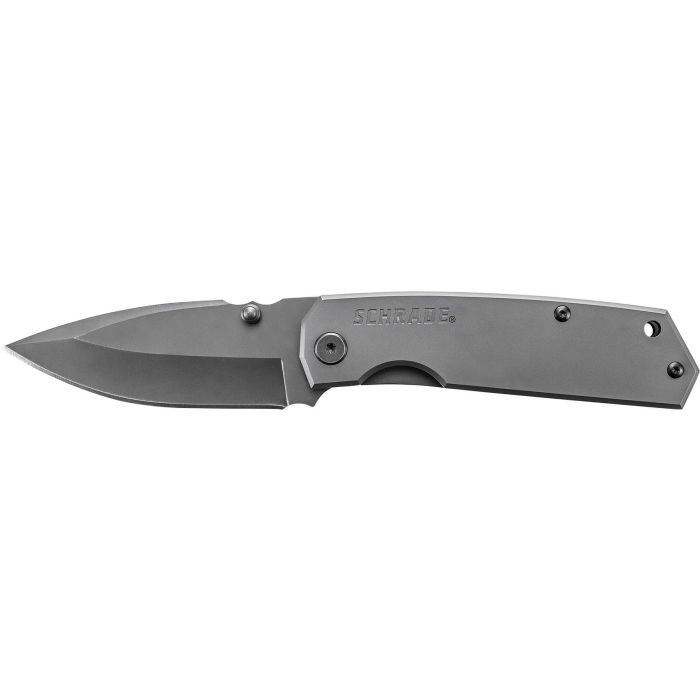 Тактически сгъваем нож от американската компания Schrade® модел SCH303M Mini. Ножът е най-малкият представител на серията 300 и е неверояно лек, тежи само 71 грама. Разполага с линейно заключване на острието, което спомага и отварянето му с една ръка. Острието е изработено от високовъглеродна неръждаема стомана с марка 9Cr18MoV със сиво титаниево покритие за повече здравина и по-трудно износване на ръба. Ръкохватката е произведена от неръждаема стомана, също със сиво титаниево покритие, като в задният си край има отвор за ремък. Моделът разполага с клипс за закачане.