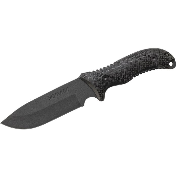 Тактически нож Shrade модел SCHF36 Frontier. Този нож с фиксирано Full-Tang острие е отличен избор за вашите сървайвър преживявания, туризъм, къмпингуване и бушкрафт. Ножът се отличава с дълго 5,05-инчово острие от висококачествена въглеродна стомана 1095 с прахово черно покритие. Прахово боядисаното острие с фини кантове издържа на корозия и е остро като бръснач. Чирените на ръкохватката са от TPE термопластичен материал с релеф, гарантиращ сигурен захват. Ръкохватката разполага с отвор за ремък. Ножът се предлага в комплект със синтетична кания, точило и магнезиево огниво. SCHF36 предлага на любителите на открито нож, готов да поеме тежките условия на открито.