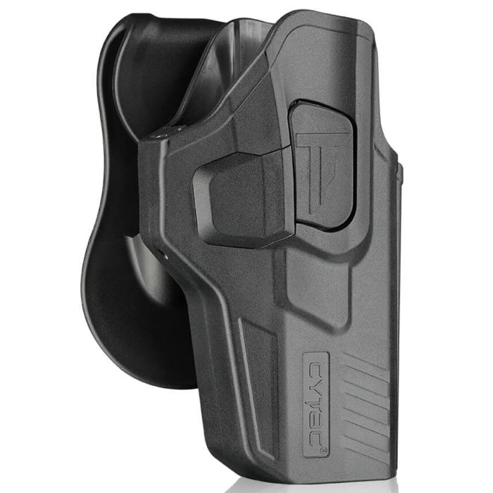 Husă din polimer Cytac cu clip de curea pentru Glock 17, 22, 31 (Gen 1,2,3,4); Glock 17 Gen 5. Holsterul are un mecanism de reglare a tensiunii și se potrivește perfect armei dvs. Mecanismul de blocare special conceput de CYTAC asigură un "Nivel II" sigur și securizat, oferind în același timp o eliberare "Quick Draw" cu un deget.