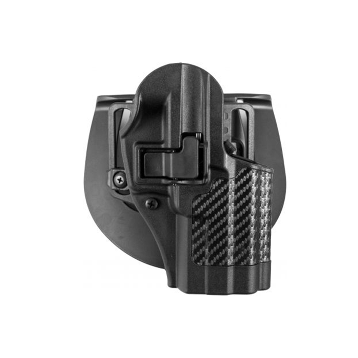 Holster din polimer Serpa CQC cu un design unic și o acoperire caracteristică cu fire de carbon, care vă face să uitați de vechile modele cu fermoar, încordând și încetinind procesul de scoatere a armei. Sistemul patentat de blocare "Serpa" blochează clema trăgaciului armei atunci când este retrasă în holster și o menține stabilă până la reholstare. Acest lucru se realizează printr-o mișcare normală a mâinii de tragere și a degetului arătător. Degetul arătător al mâinii de tragere deblochează mecanismul prin apăsarea unui buton special. Manipularea este rapidă și ușoară, deoarece se conformează mișcărilor naturale ale trăgătorului, spre deosebire de încuietorile cu degetul mare, care sunt uneori dificil de manipulat cu o singură mână. Toate husele din această serie sunt dotate cu o platformă pentru curea și cu un accesoriu suplimentar pentru curea, cunoscut sub numele de "paletă". Potrivit pentru modelele "Zig" PRO 2022.