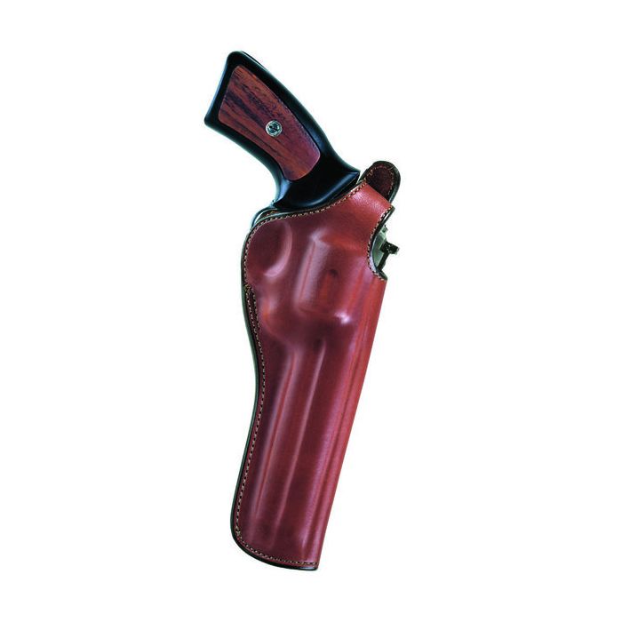 Holster pentru revolver Bianchi model 111, fabricat din piele de înaltă calitate. Holsterul are un design clasic și este ideal pentru purtarea zilnică. Are o închidere rapidă cu buton "tic-tac". Forma marginii de ghidare protejează vizorul reglabil de pe revolver. Se potrivește la curele de până la 45 mm lățime și este pentru mâna dreaptă. Se potrivește revolverelor precum S&W N frame și cu lungimea țevii de 4".