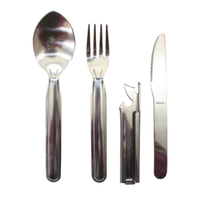 Set de tacâmuri de la compania engleză Web-Tex. Setul este format dintr-un cuțit, o furculiță și o lingură. Fabricat din plastic robust și ușor, de culoare verde măslin. Greutate: 29 g.
